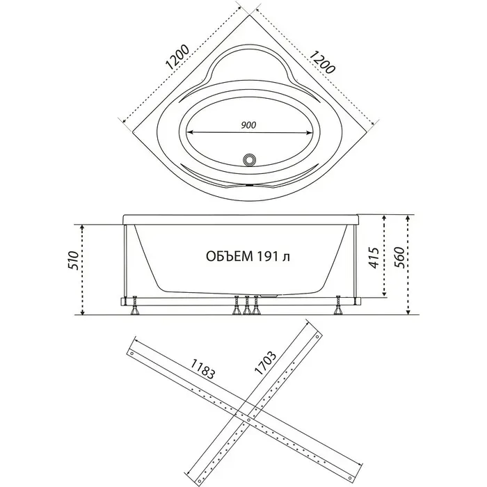 Акриловая ванна 1ACReal Мартин Щ0000045647 обрезанная 120 см белый купить