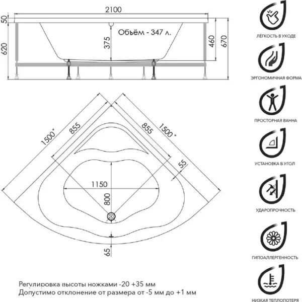 Акриловая ванна – это стильное, практичное и доступное решение для любой ванной комнаты. Изготовленная из высококачественного акрила, она обладает рядом преимуществ, которые делают ее популярным выбором среди потребителей.