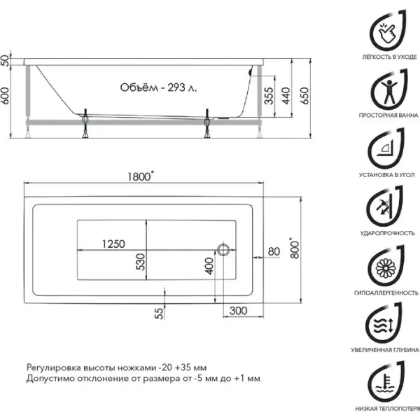 Основные достоинства акриловой ванны: