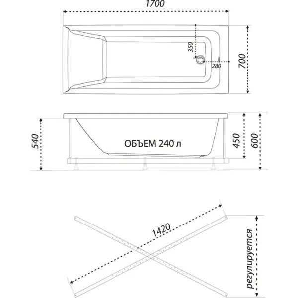 Акриловая ванна 1ACReal Тори Щ0000044551 170x70 см на Х-каркасе белый