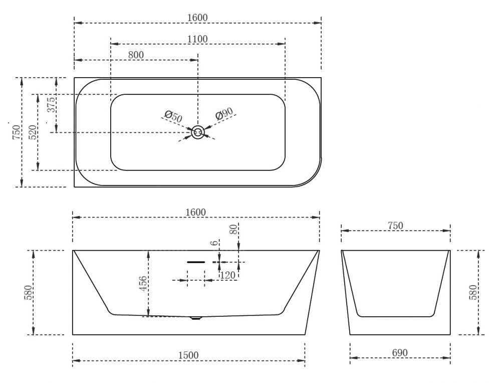 Акриловая ванна ABBER 160x75см левая AB9331-1.6 L купить