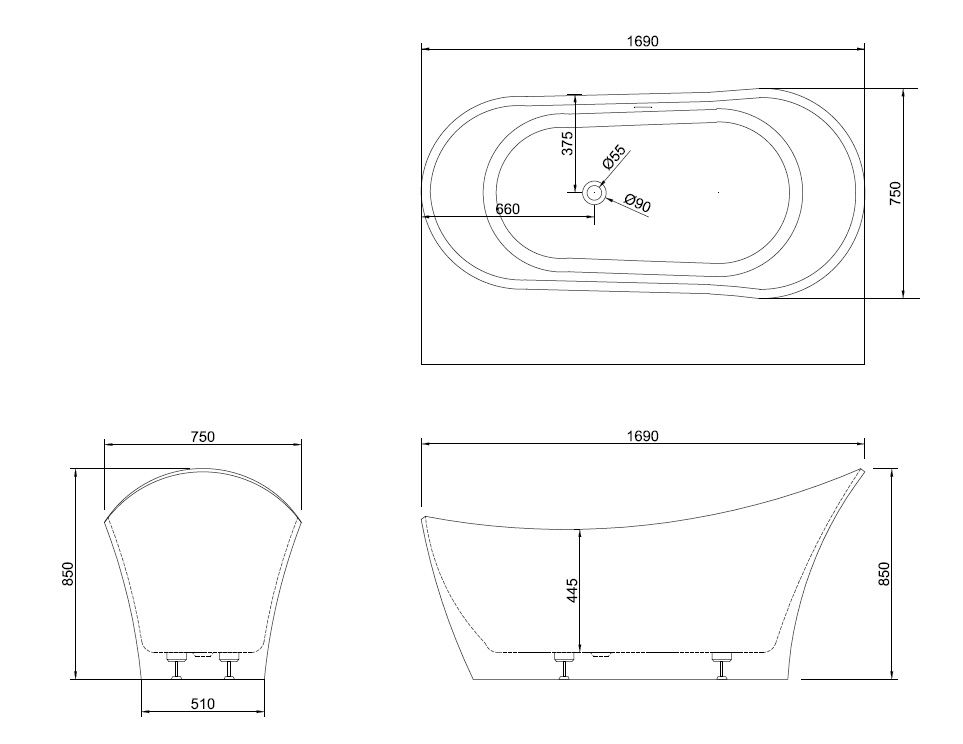 Акриловая ванна ABBER AB9245 169x75x85