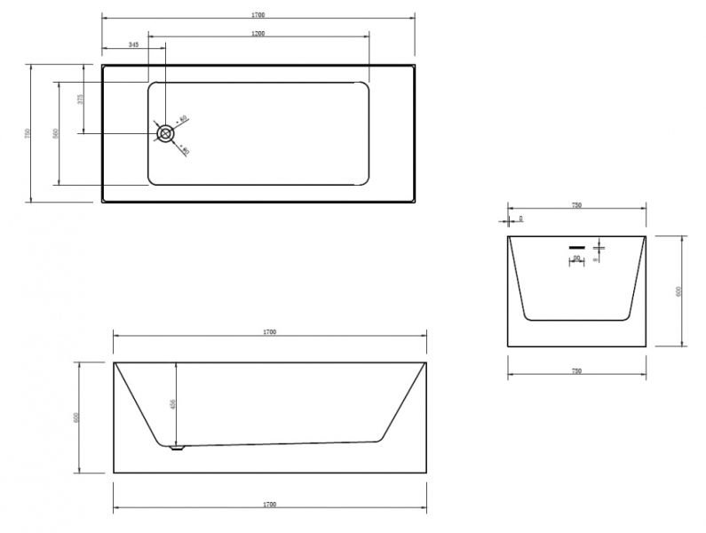 Акриловая ванна ABBER AB9274 170x75 купить