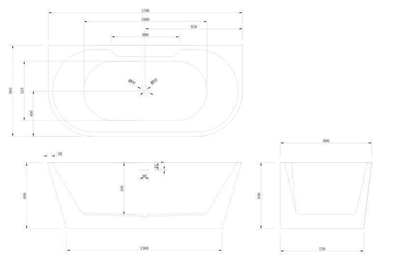 Акриловая ванна ABBER AB9296-1.7MB 170x80см чёрный матовый