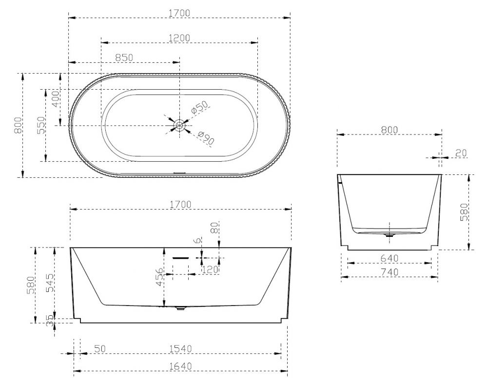 Акриловая ванна ABBER AB9325-1.7 170х80х58