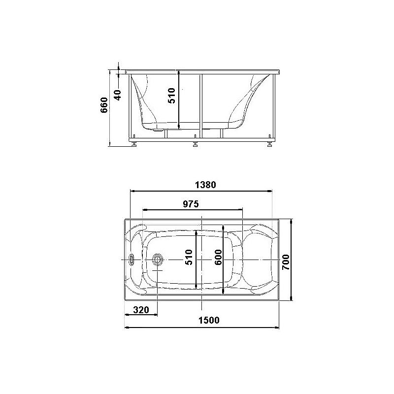 Длина, см:150Ширина, см:70Высота, см:66Глубина, см:51Форма:ПрямоугольнаяВнутр. размер дна, см:97,5Внутр. размер ванны, см:138Внутренняя ширина, см:60Макс. емкость, л:250Вес, кг:40