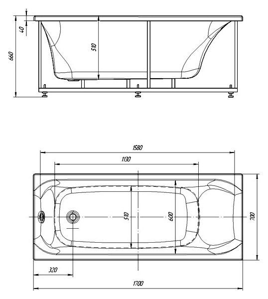 Длина, см:170Ширина, см:70Высота, см:66Глубина, см:51Форма:ПрямоугольнаяВнутр. размер дна, см:113Внутр. размер ванны, см:158Внутренняя ширина, см:60Макс. емкость, л:280Вес, кг:45-