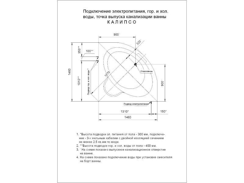 - Состав комплекта: Ванна, каркас, Слив-перелив