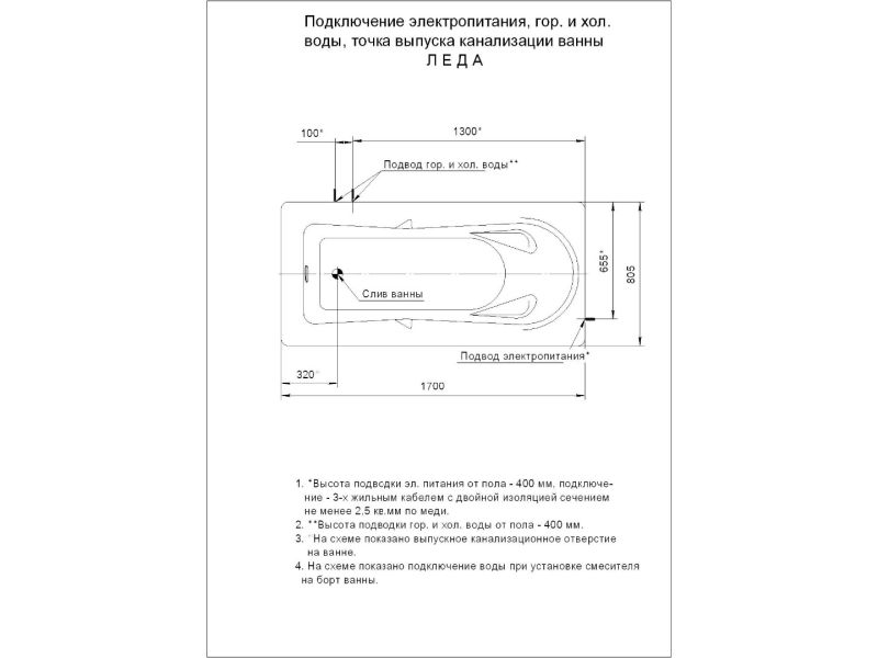 - Состав комплекта: Ванна, каркас, Слив-перелив
