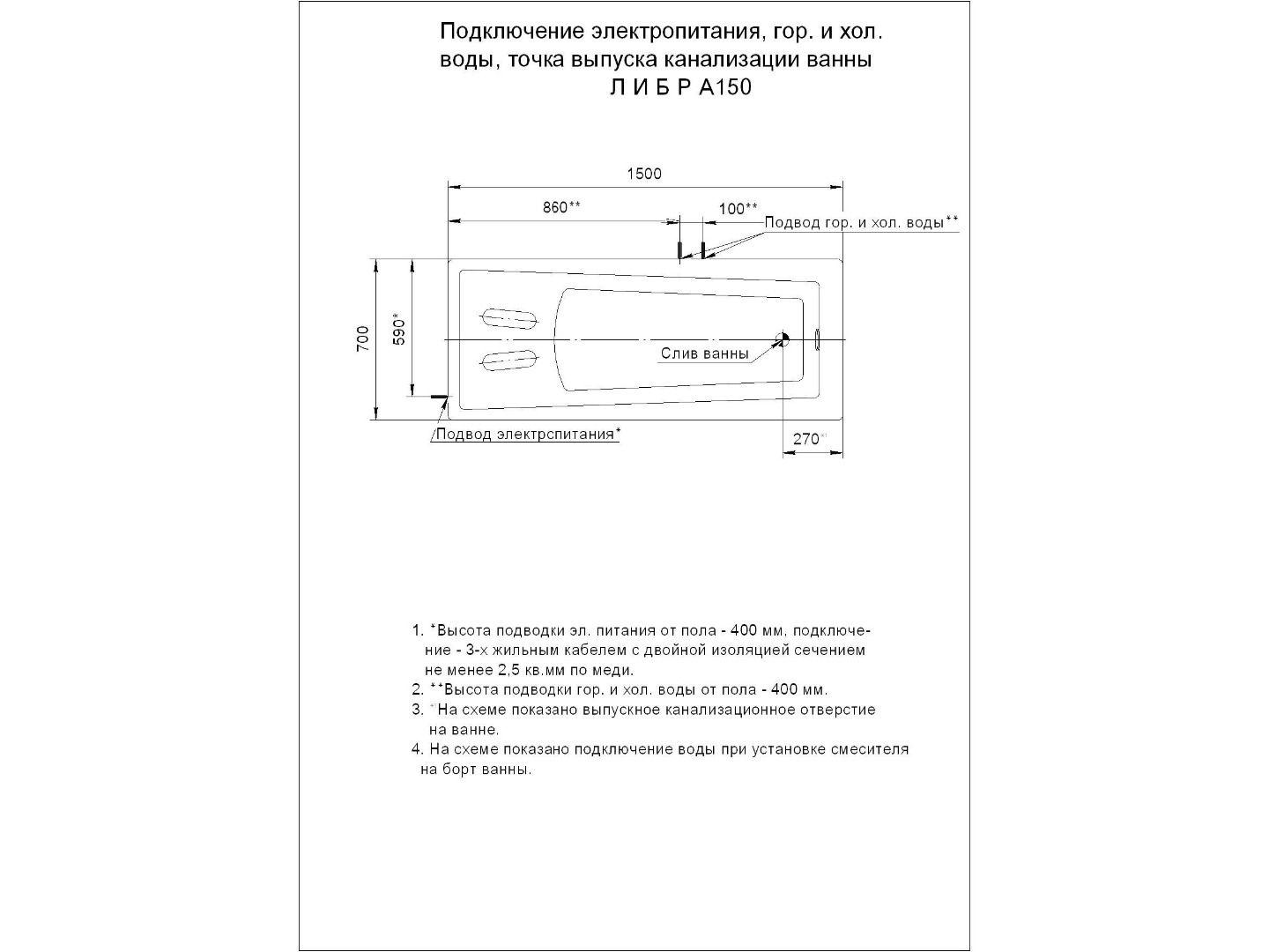 • Состав комплекта: Ванна, каркас, Слив-перелив