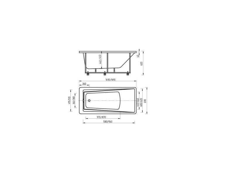 Длина, см:150Ширина, см:69Высота, см:62Глубина, см:45Форма:ПрямоугольнаяВнутр. размер дна, см:97Внутр. размер ванны, см:138Внутренняя ширина, см:51Макс. емкость, л:170Вес, кг:38