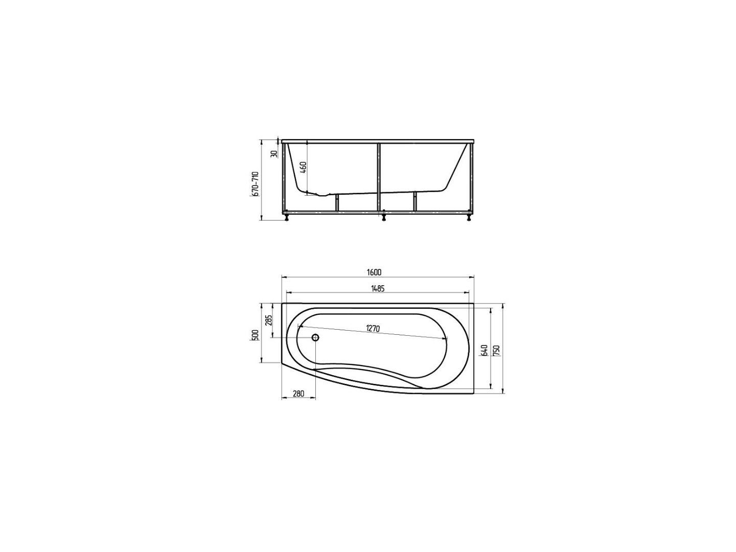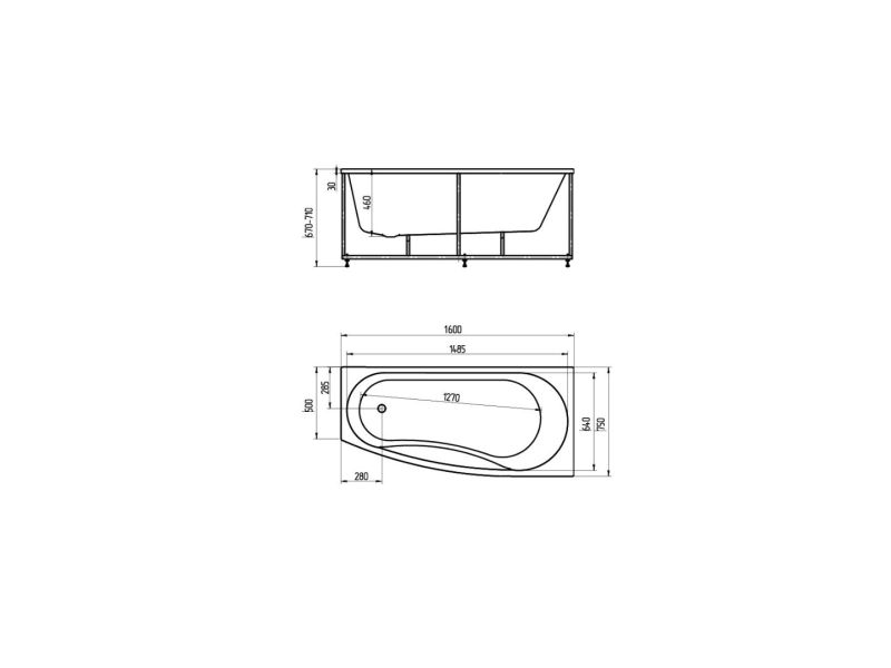 Длина, см:160Ширина, см:75Высота, см:67–71Глубина, см:46Форма:АсимметричнаяВнутр. размер дна, см:127Внутр. размер ванны, см:148,5Внутренняя ширина, см:64Макс. емкость, л:200Вес, кг:45