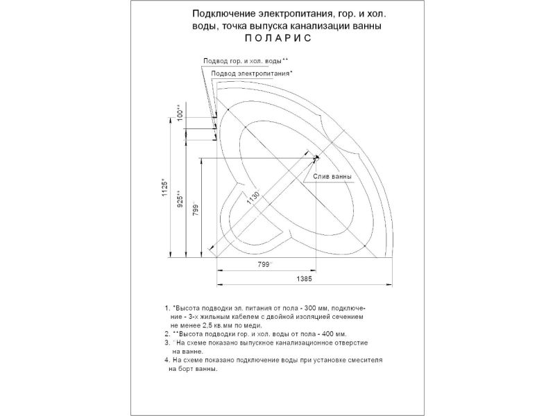 Ванна Поларис представлена в двух вариантах, отличающихся размером и количеством форсунок. Размер 138,5х138,5 см — внешняя компактность при внутреннем просторе. Современный дизайн, выполненный в стиле Hi-Tech. Ванна выглядит очень стильно и современно.