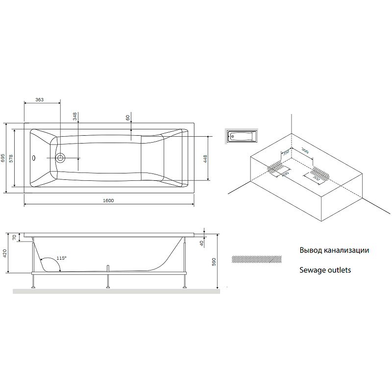 Стандартные размеры, см:160x70