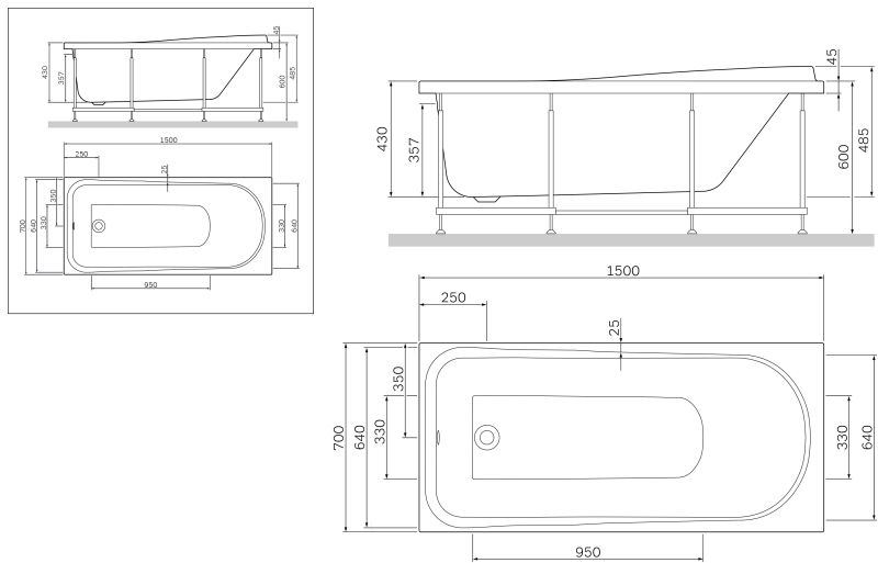 Стандартные размеры, см:150x70