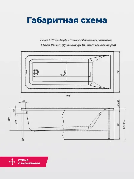 Акриловая ванна Aquanet Bright 170x75 создана с учетом растущего спроса на ванны простой прямоугольной формы в популярных размерах. Это модель с прямыми бортами и пологой спинкой, где соблюден идеальный угол для комфортного нахождения в ванне. Спинка плавно перетекает в бортик, поэтому релакс гарантирован даже без использования подголовника. Все линии ванны подчинены строгим законам эргономики. В современных условиях ширина ванны 75 см при длине 170 см - одно из популярных габаритов, так как прекрасно вписываются в стандартную планировку современных ванных комнат. Чаша в этой ванне устроена таким образом, что для обозначенных размеров в ней достигнут максимально возможный внутренний объем, а именно 190 литров, и это при комфортной глубине в 403 мм от слива ванны до борта. Ванна рассчитана на нагрузку свыше 300 кг, так что даже крепкий мужчина сможет без опаски находиться в ней. Двойной слой армирования обеспечивает надежность чаши, а закладные из МДФ-плит в местах наибольшей нагрузки усиливают эффект.