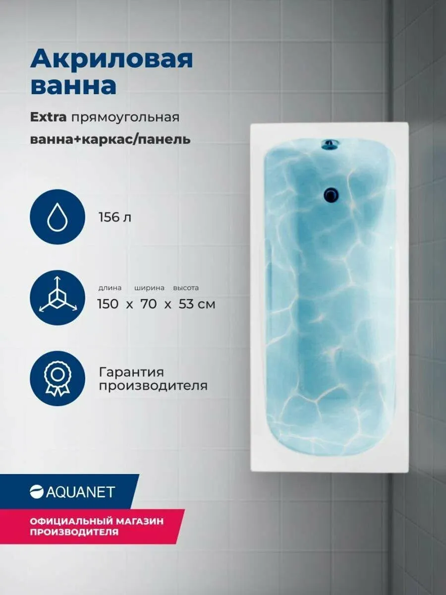 Акриловая ванна Aquanet Extra 347146 150x70 см с каркасом и фронтальной панелью купить