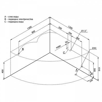• Размер: 120x120x67 см. Глубина: 40 см. Объем: 230 л.