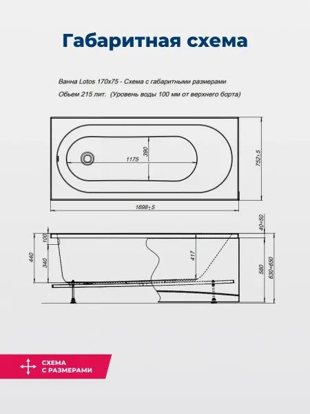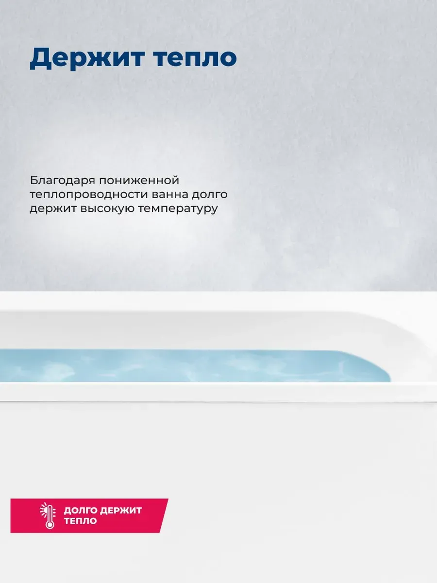 Овальная чаша объемом 215 л со стандартным сливом дополнена расположенной под углом спинкой, переходящей в прямые широкие бортики. Глубина составляет 44 см. Выверенная до мелочей эргономика обеспечивает комфортное принятие водных процедур, позволяет держать под рукой необходимые гигиенические принадлежности. Устойчивость придает прочный металлический каркас, оптимальную высоту которого можно подобрать за счет регулируемых ножек.