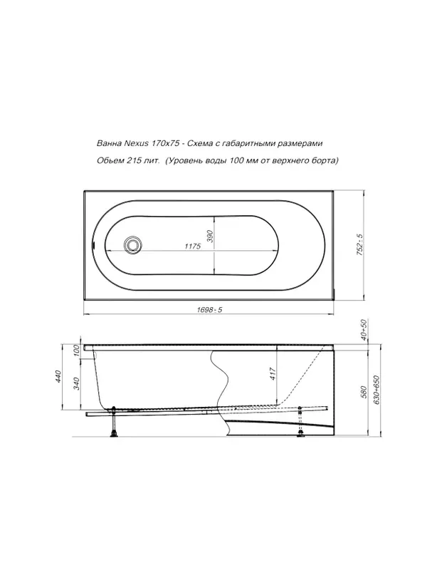 Акриловая ванна Aquanet Nexus 362567 170x75 см с каркасом