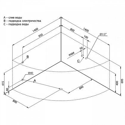• Размер: 140x140x72,6 см. Глубина: 56 см. Объем: 460 л.