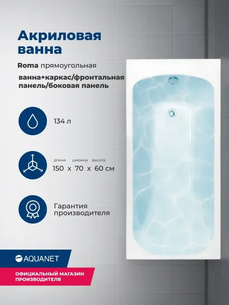 Акриловая ванна Aquanet Roma 347889 150x70 см с каркасом с фронтальной и боковой панелями купить