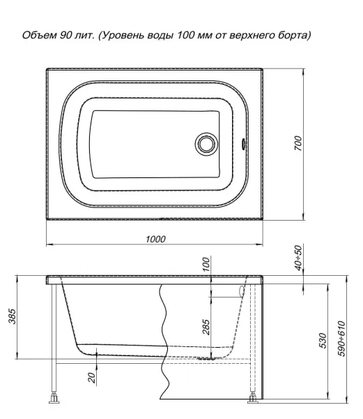 Акриловая ванна Aquanet Split 331906 100x70 см с каркасом купить