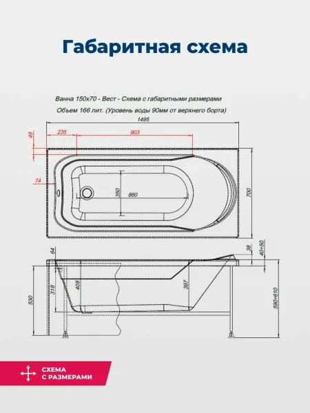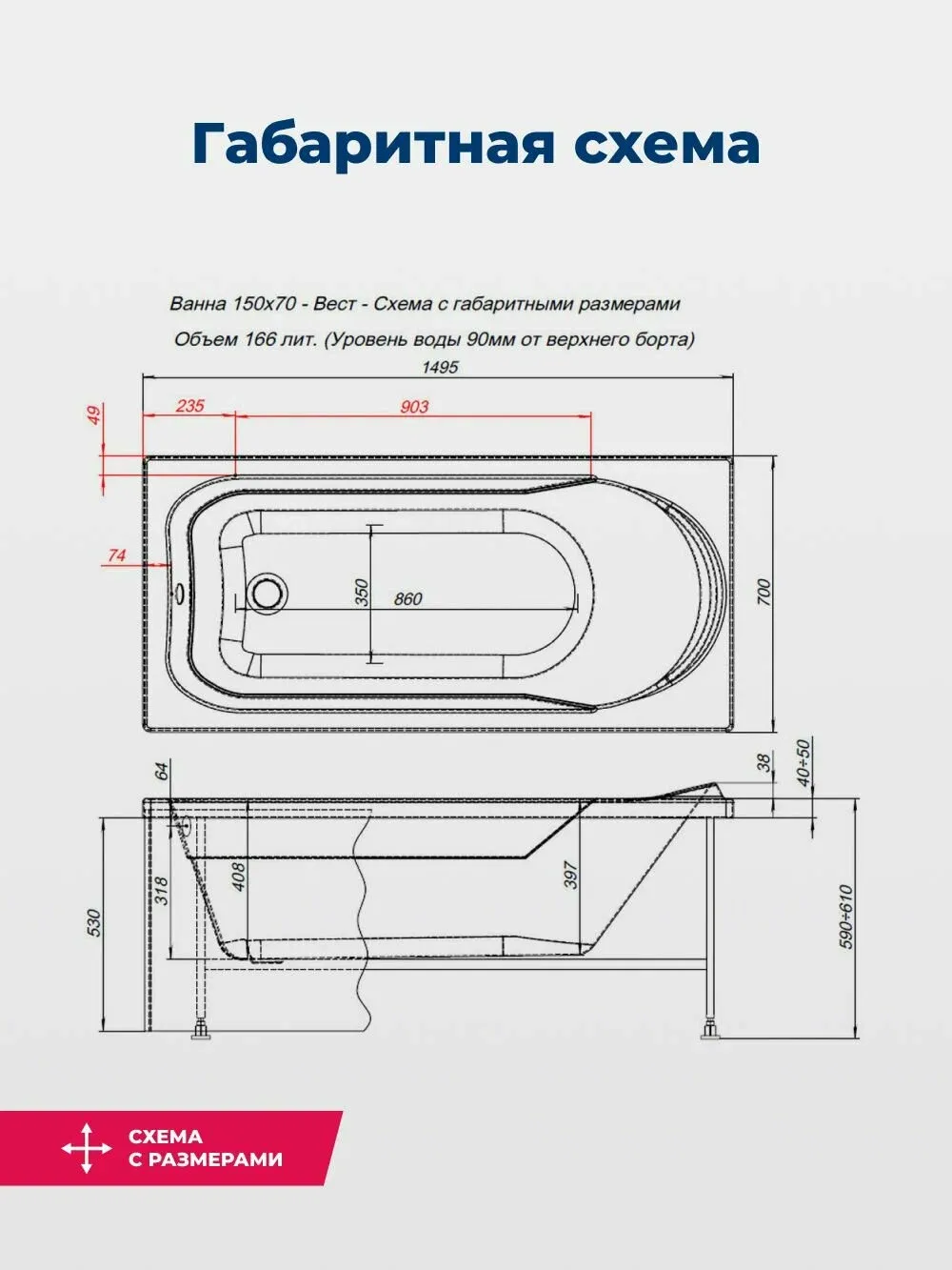 Акриловая ванна Aquanet West 150x70 — прекрасный выбор модели эконом-класса стандартного размера. На первый взгляд она напоминает своей формой модели Nord. Тот же эргономичный силуэт с рассчитанным углом наклона задней стенки, которая позволяет удобно расположиться в ней даже человеку высокого роста. Тот же специальный выступ для подголовника, те же компактные площадки по углам ванны, которые можно приспособить под размещение банных принадлежностей. И та же белоснежная поверхность сантехакрила, которая роднит все ванны Aquanet. И все же разница есть. Она дешевле. Причем, на низкую цену повлияли вполне объективные вещи. Для изготовления ванны West использован акрил толщиной 4 мм. Также ее глубина на 5 см меньше, чем у ближайших родственников из коллекции Nord.