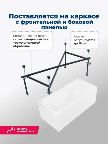 Акриловая ванна Aquanet West 347901 160x70 см с каркасом с боковой и фронтальной панелями
