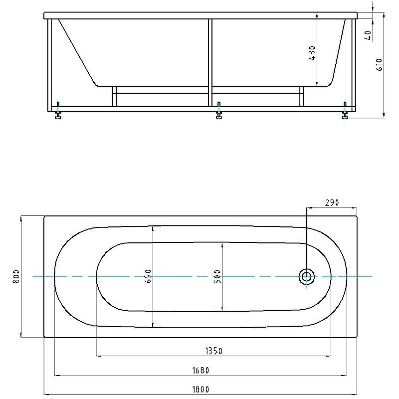 Акриловая ванна Aquatek Оберон OBR180-0000141 180х80 см