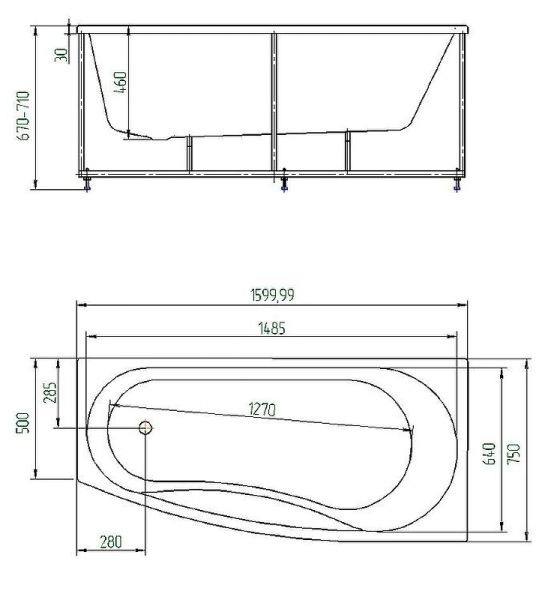 - Ванна устанавливается на каркас, который поставляется в комплекте
