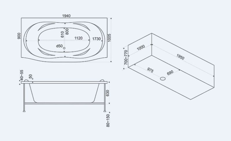 - Размеры: 1940 х 900 мм