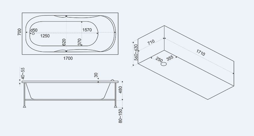 Размеры: 1700 х 700 мм