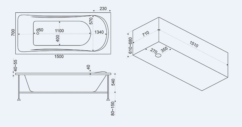 Размеры: 1500 x 700 мм