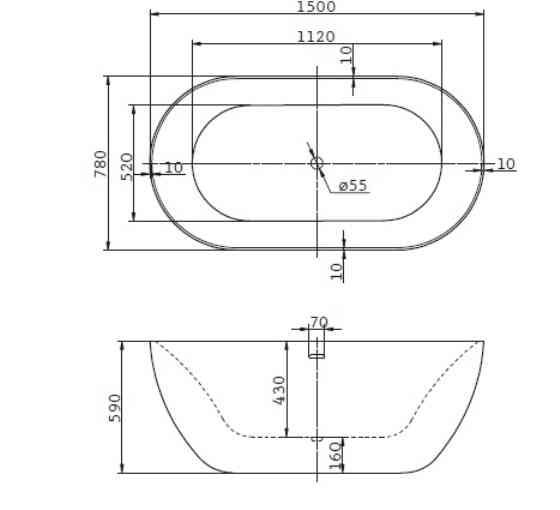 Расположение слива: по середине дна ванны