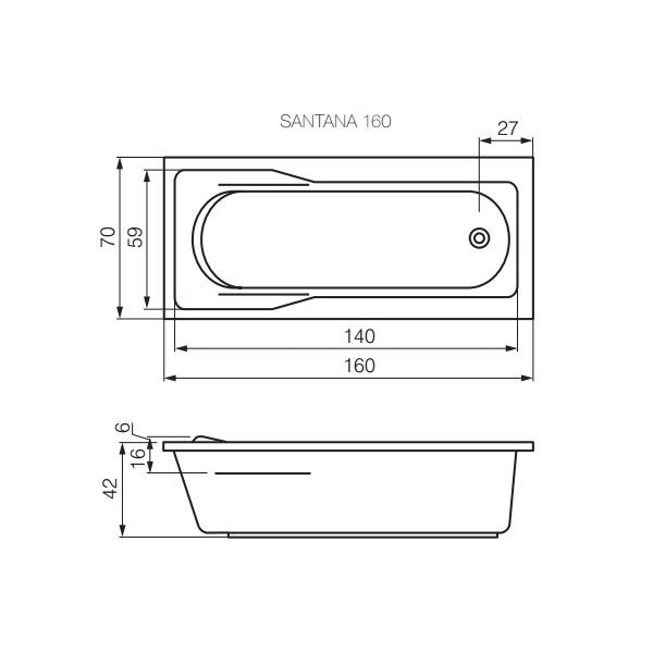 Акриловая ванна Cersanit SANTANA 160х70 купить