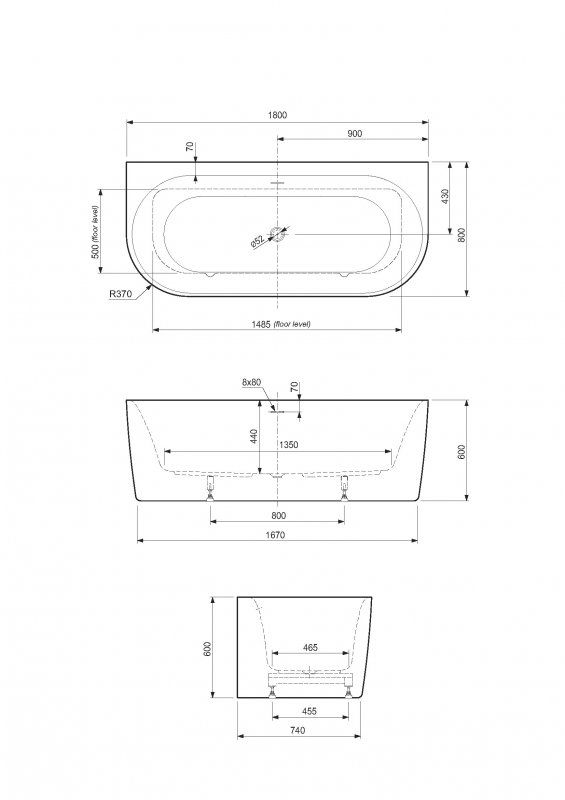 Акриловая ванна CEZARES METAURO-INT-Wall-180-80-60-G-W-MATT