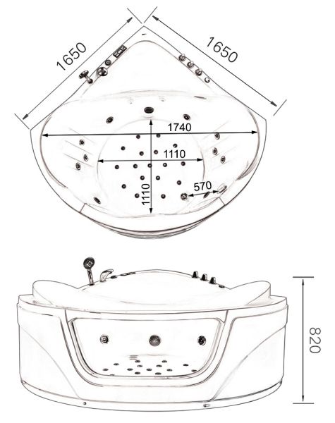 • аэромассаж, 17 форсунок с подсветкой