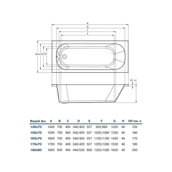 Артикул: ROUNDARC150X70