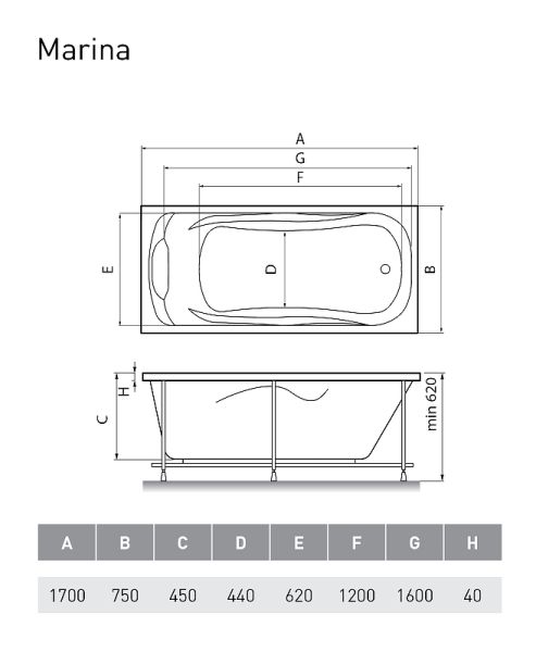 Акриловая ванна Relisan Marina 170x75 Гл000008874 без гидромассажаАкриловая ванна Marina украсит собой любую ванную комнату. Сочетание красоты, лаконичности и бесспорного качества. Изысканная форма проверенная временем. Удобные подголовник и подлокотники гарантируют комфорт и удовольствие от принятия ванны.