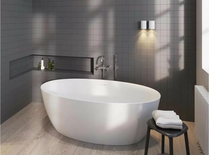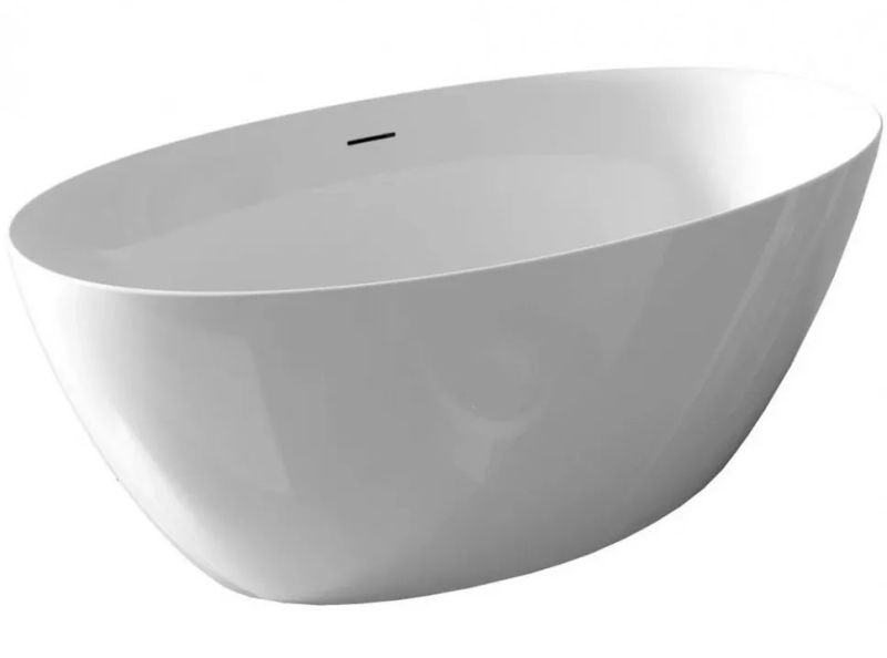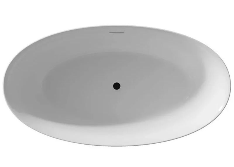 Отдельно стоящая овальная, глянцевая белая акриловая ванна RIHO Beta 170х82 с тонкими двойными стенками, со встроенным переливом.