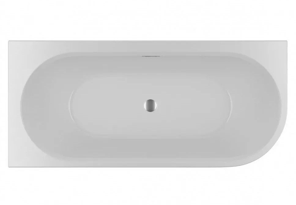 Асимметричная глянцевая белая акриловая ванна RIHO DESIRE CORNER 184х84 R (радиусная часть справа) с двойными стенками, со встроенным переливом и нажимным донным клапаном.