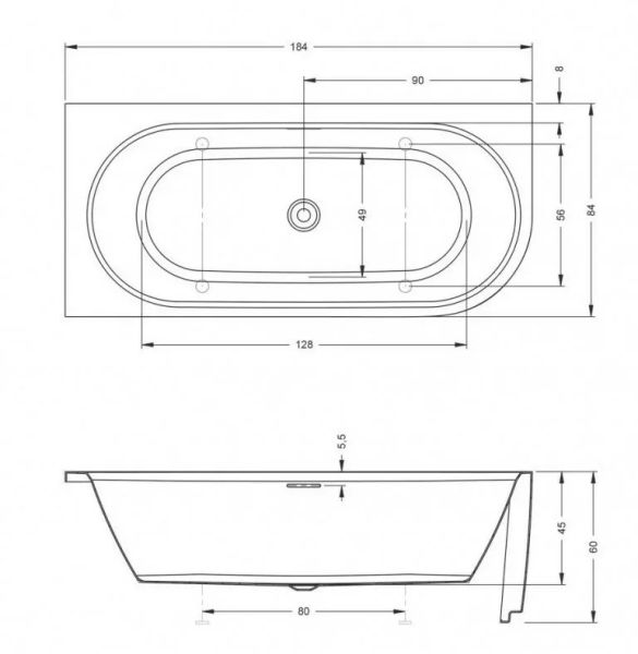 Белая глянцевая ванна поставляется в стандартной комплектации с хромированным сливом переливом