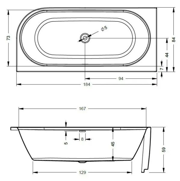 Щелевое отверстие перелива может быть использовано для встроенного наполнителя ванны Riho Fall (приобретается отдельно)