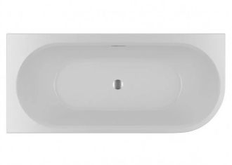 Асимметричная матовая белая акриловая ванна RIHO DESIRE CORNER 184х84 R VELVET (радиусная часть справа) с двойными стенками, со встроенным переливом и нажимным донным клапаном.