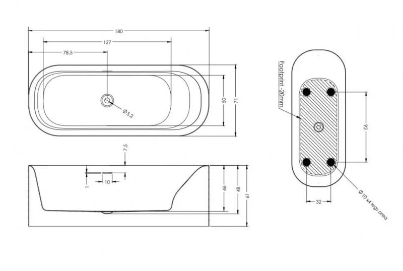 Щелевое отверстие перелива может быть использовано для встроенного наполнителя ванны Riho Fall (приобретается отдельно)