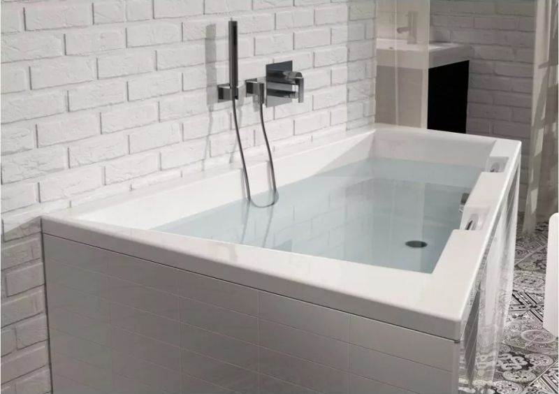 Материал непористый и гладкий, поэтому на нём не остаются известковый налёт и бактерии, поверхность ванны легко очищается.