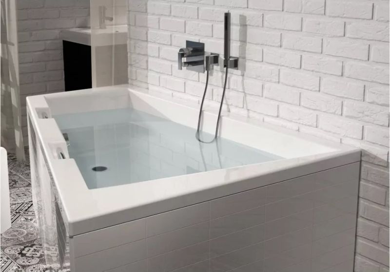 Материал непористый и гладкий, поэтому на нём не остаются известковый налёт и бактерии, поверхность ванны легко очищается.