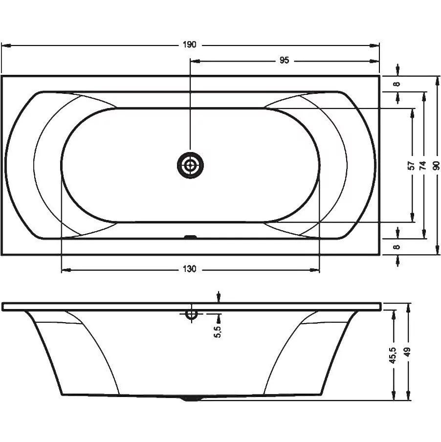 Акриловая ванна RIHO Lima 190x90 изготовлена из высококачественного листа акрила белого цвета, полностью армирована.