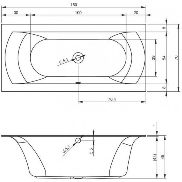 Акриловая ванна RIHO Linares 150x70 изготовлена из высококачественного листа акрила белого цвета, полностью армирована.